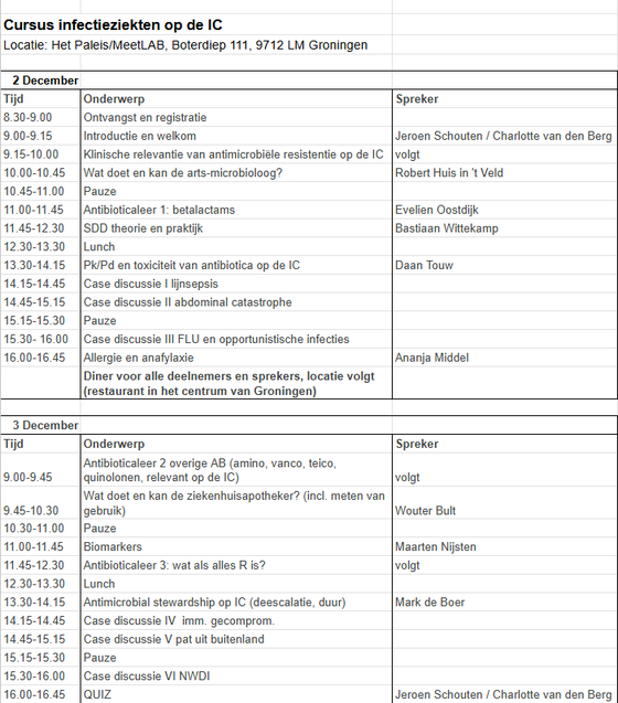 Inschrijven cursus Infecties bij de IC patiënt 2 - 3 december 2025 Groningen